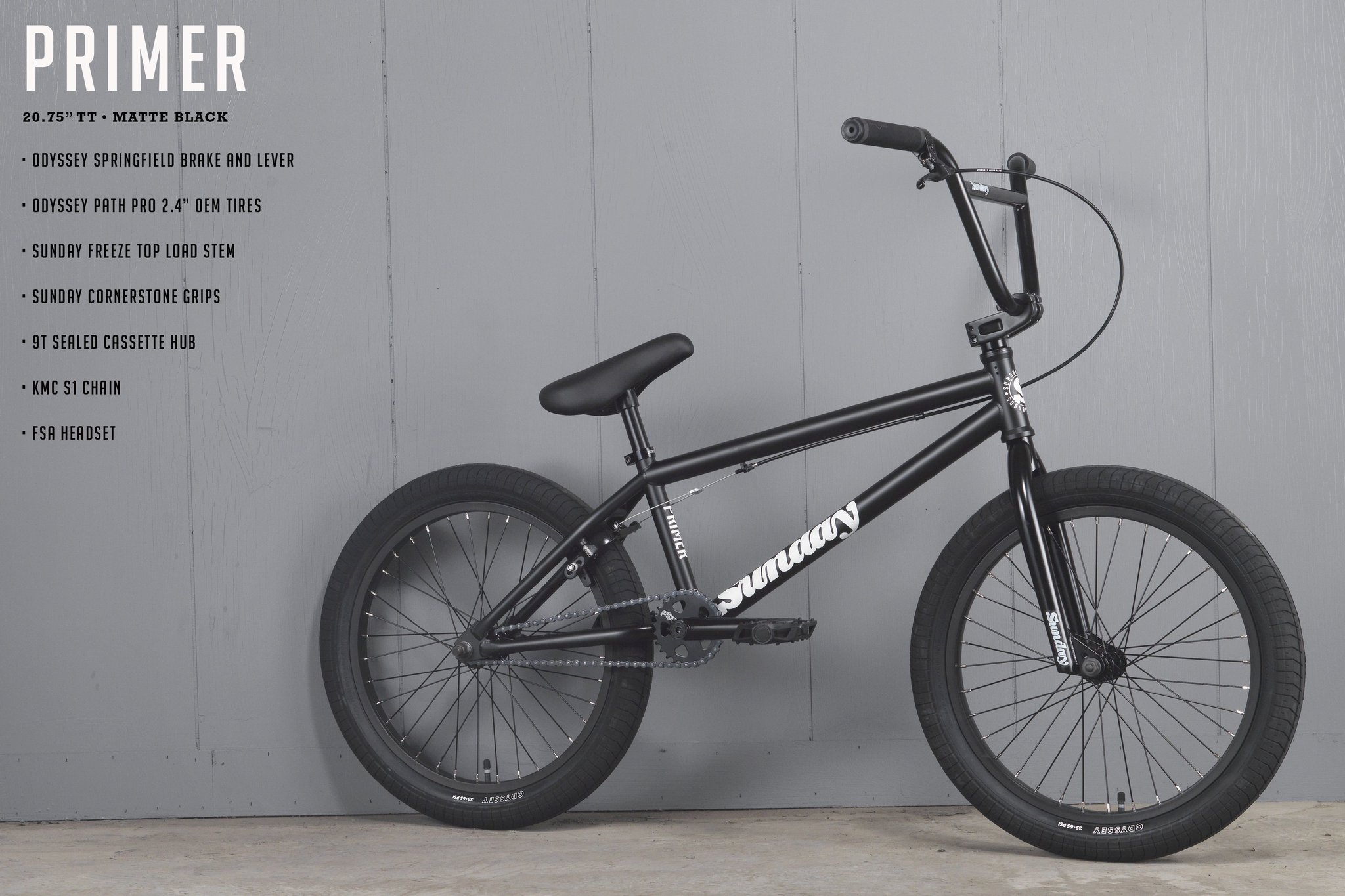 Sunday Primer Blue Bike 2075 Bike 2019 See 2020 Sale. Designed to be an entry level bike Sunday made sure to kit this model out to be able to withstand hard hits and abusive new tricks. Sunday 2022 Primer 21 Complete BMX Bike - Matte Black.